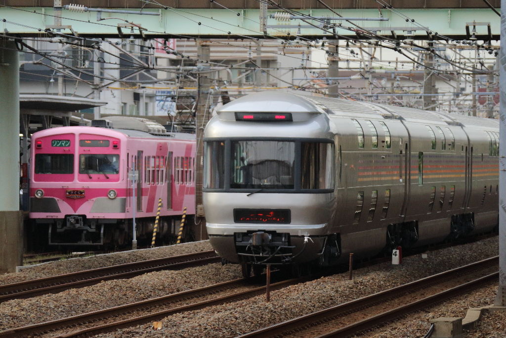 流鉄流山線の車両とカシオペアE26系客車。