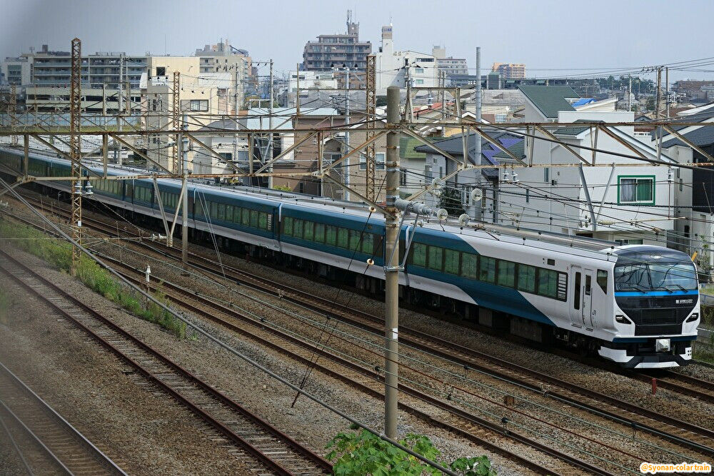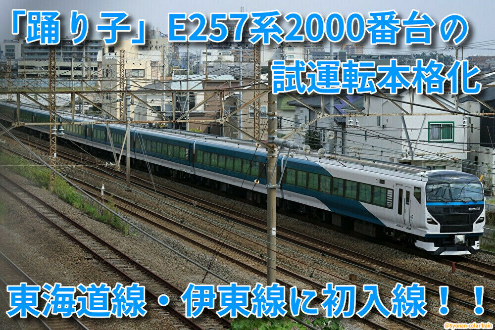 (写真1:試9531M 新踊り子E257系2000番台NA-03編成@平塚~大磯)